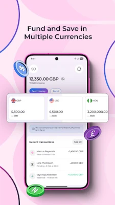 Multi-Currency Accounts: Hold and send money in multiple currencies like GBP, USD and NGN all from one app.