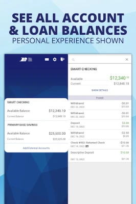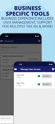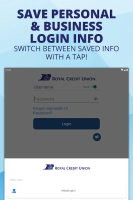 A combined login experience allows Members with both personal and business accounts to use a single app. Members may save a separate username and password for personal and business accounts. After logging in, users will see separate personal and business experiences.