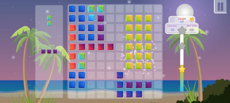 The first game is called Royal Blocks. Place blocks, clearing rows and columns to earn points. Hit the score objective to clear the stage.