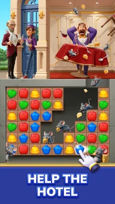 Royal Hotel Match is a relaxing Match-3 Puzzle game where you can solve colorful puzzle games to restore a luxurious hotel. Swap, match tiles, clear fun match 3 puzzle levels and complete a full hotel makeover room by room.
