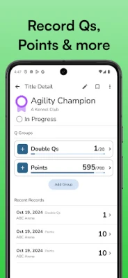 - Effortlessly stay on top of your dog's performance by logging qualifying runs, NQs, placements, scores, and notes.