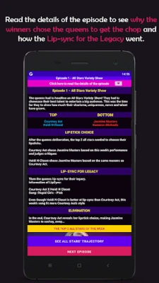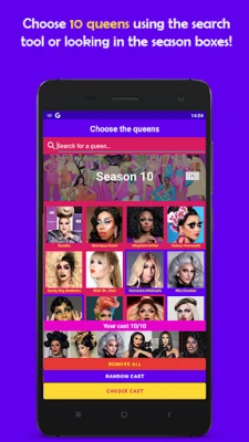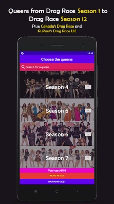 You can select queens of the entire series of RuPaul's Drag Race to form the cast of you All Stars season. The options are between Season 1 to Season 13 and even International versions (more than 250 Drag Queens), even Winners for each season are avaliable to select! Besides, you can choose the challenges for each episode! (Snatch Game, Ball, Roast, Rusical...).