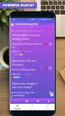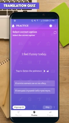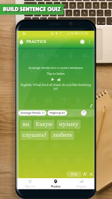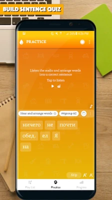 The app provided you with thousands of common sentences used in everyday life, with audio for each sentence. All the app's features are designed to help you learn to make Russian sentence and improve the main skills: Listening to a sentence, writing (making) a sentence correctly, speaking a sentence/a phrase correctly.