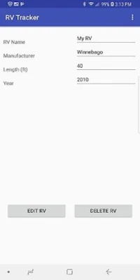 - Multiple RVs - All information linked to a RV - Track Equipment - Track Maintenance - Track Expenses - Import and Export your data so you can synchronize multiple devices - Attach Equipment Manuals to your Equipment