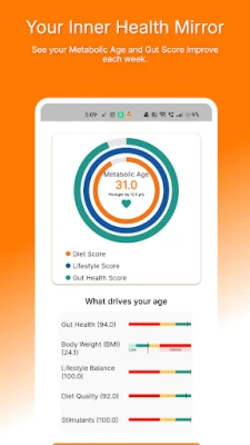 Track hydration, sleep, mood & stress — refine Gut Health & Metabolic Age every week.