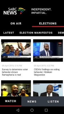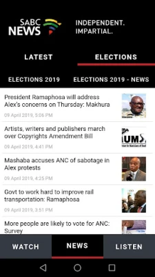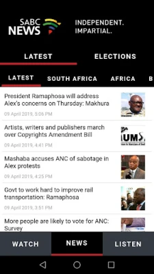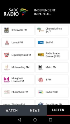 The SABC News mobile app is your one stop digital portal to all the news you need. Stay connected with the latest and breaking stories, watch the SABC News channel along with clips and livestreams of all the big news events and listen to all the SABC radio stations live, including podcasts, and much more.