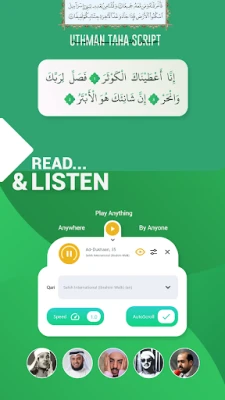 Experience a clean, distraction-free Quranic text and listen to high-quality recitations by renowned Qaris. Perfect for both reading and listening anywhere, anytime.