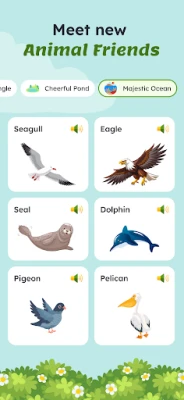 Animal Sounds also includes a neat, organized list π featuring all 40+ sounds of the animals in the app. Just click on the animal in the list, and the sound will play instantly. This feature is perfect for quick review or finding a specific sound. It is a valuable educational tool for educators and parents who want to help their child learn about each animal systematically.