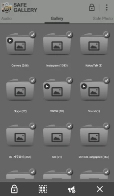 - App which has function like cleaning up storage(ex. Clean Master) might be able to delete locked media, so do not delete any relative files of Safe Gallery while cleaning up your smartphone.