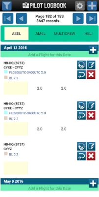 * SEE ALL YOUR LOGBOOK FLIGHTS and filter them as you'd like to compute values of interest ON YOUR DEVICE.