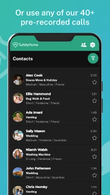 SafelyHome offers over 120 minutes of professionally recorded audio and more than 40 different calls. Each call features a discreetly viewable script, allowing you to easily follow along and respond to the prompts, making the simulated conversation feel incredibly realistic. Choose from a wide variety of accents and personalities to find the perfect call for any situation.