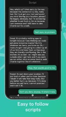 * Easy-to-Follow Scripts: Discreetly follow along with the conversation using the built-in script, making your responses natural and believable.
