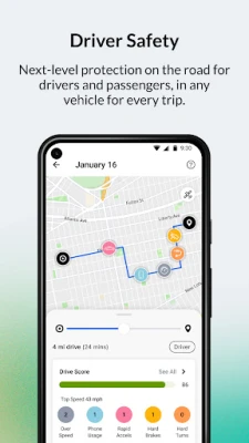 • Gain insight into specific trips with route details, miles logged, top speed, driving