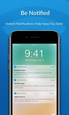 SaferWatch Alerts provide detailed safety instructions based on the incident and the ability for users to contribute information.