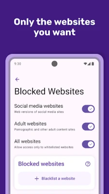 QUERY_ALL_PACKAGES: Required to list installed apps for parental control blocking. Strictly used for displaying apps, not for profiling or data collection.