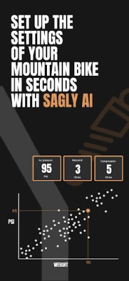 This feature is part of the Mtb suspension app SAGLY and guides you through a basic setup by using the SAG method. Also a tire pressure calculator is integrated, which generates the right air pressure based on your profile. Moreover an AI algorithm gives you the right settings of your suspension model in settings. Lastly also factory settings from the manufacturer are imported and suggested to you.