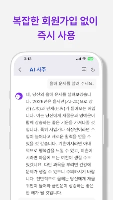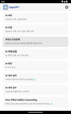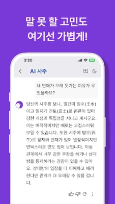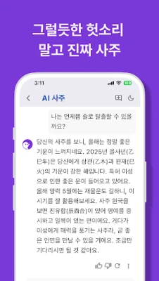 AI Saju: Get personalized fortune-telling analysis based on your birth date and time. Daily Horoscopes: Check your daily, monthly, and yearly luck. Compatibility (Gunghap): See your relationship and marital compatibility with others. Free Fortune Telling: Access a variety of free Saju and horoscope services. Manse-ryeok: Includes a traditional Korean perpetual calendar for detailed Saju analysis.