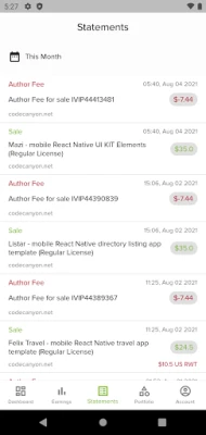 - Statements (sales, author fees, purchases, withdrawals, etc.)