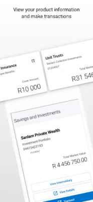 Set up a pin or enable fingerprint ID for the app and rapidly sign in on your next visit. Securely access your portfolio of Sanlam products and engage with the individual business units to view detailed information and transact online.
