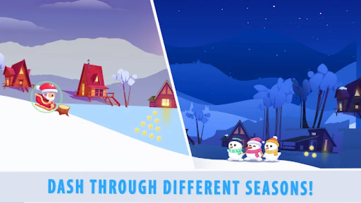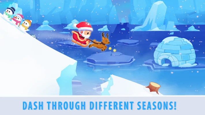 🦌 Ride with Magic Power-Ups – Hop on Santa’s sleigh, summon reindeer, and glide past obstacles