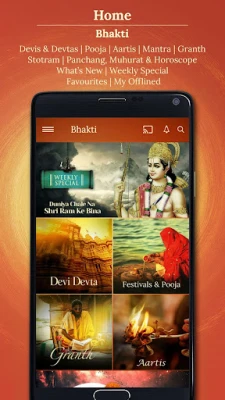- Offline both audio & videos to listen to your favourite Bhajans, Aartis, Mantras, Stotram, granth or watch videos even without being connected to the internet
