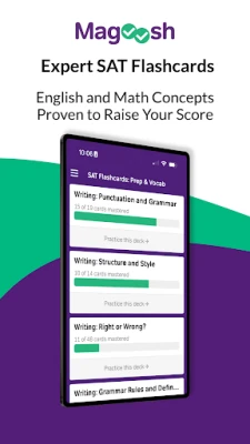 This app gives you access to all of Magoosh’s SAT flashcards. Sign in with a Magoosh account (or create a new free one) to save your progress to the web so that you can continue your practice online at https://sat.magoosh.com/flashcards