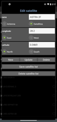 WARNING: when you are close to or in between walls, roofs, sheds, trees, houses, flats or close to metal the phone's GPS location can be totally wrong which will result in a faulty satellite position !! Your satellite dish and target should be preferably in an 'open space'.