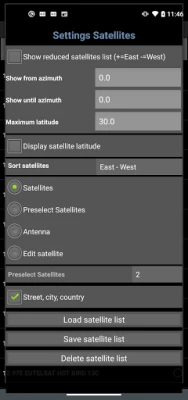 2- The GPS location of the satellite dish and the GPS location of a target (or reference point) is needed. The target can be the GPS location of a house, tree, plant, etc. Just enable the GPS in your phone or enter the GPS locations with the help of Google Earth/Maps (satellite dish position and a visible target position).