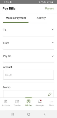 Manage Payees: •Ability to add new payees, existing payers, or delete payees directly from the mobile app.