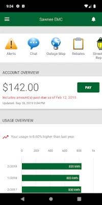 The Sawnee EMC app provides members account management at their fingertips. Members can view their use and bill, manage payments, notify member service of account and service issues and receive special messaging from Sawnee EMC. Additional Features: