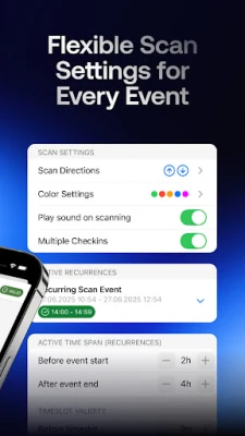 Features: • Scan and validate tickets via QR code or barcode • Live status showing if tickets are valid, already used, expired etc. • Supports recurring events and time slot tickets • Offline mode for venues without internet • Real-time overview of attendee numbers • Quick setup, no additional hardware required