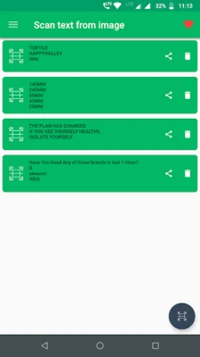 You have image of business card shared on WAapp or any magazine cover photo form where you need the url or email id or phone number, simply take photo and use this Text scanner app to extract text and save this text or share it from within an app.