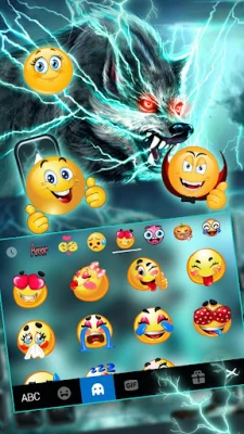 Scary Lightning Wolf Keyboard Theme. Want your phone awesome?Let Scary Lightning Wolf Keyboard Theme help you!Take the Scary Lightning Wolf keyboard and have your splendid experience now!