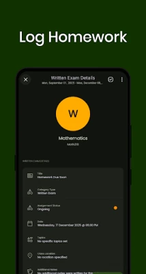 Homework & Assignments: Track tasks, set reminders, and mark work as completed — stay ahead of deadlines.