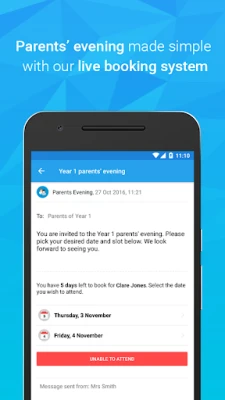 - Book your parent's evening slot instantly with our live parents' evening booking system