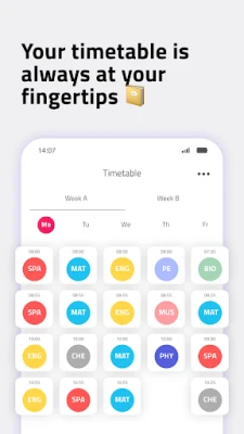 • Create your timetable with week A and B and individual class times.
