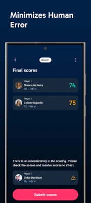 7. Minimizes Human Error: Digital card swaps with attestation between player and marker reduce human error, ensuring accurate and reliable scoring.