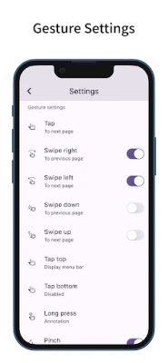 - Actions other than page turning (such as displaying the menu or writing annotations) can be assigned to gestures that won’t interfere with page turning, such as long-pressing or tapping the top or bottom edges.