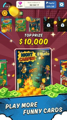 Step into Scratch Reward : Reveal Cards, a game that captures the thrill of classic scratch-off fun in a bright and interactive form. Each card hides a surprise, and with a simple swipe you reveal dazzling patterns, playful numbers, and exciting treasures that turn every round into a moment of anticipation. The experience is easy to enjoy, designed so you can make steady progress without any recharge, and every reward you uncover holds real cash-out value, giving meaning to every scratch.