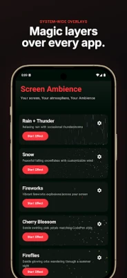 Why settle for a static wallpaper when your entire phone can come alive? Nature is a revolutionary screen overlay app that adds stunning, high-fidelity environmental effects across your entire display—even while you're using other apps, chatting, or browsing!