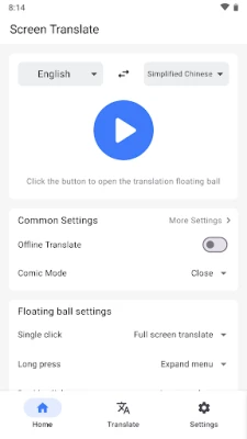 [Features]: Full-screen translation: Translate the entire screen with one click, automatically recognizing and translating all text on the screen. Regional translation: Freely select any area on the screen for translation, and accurately translate the required content. Offline translation: After downloading the language offline translation model, you can perform local offline translation even when there is no network. Comic translation: supports vertical comic translation (such as Japanese comics, etc.) and horizontal comic translation (such as American comics, etc.).