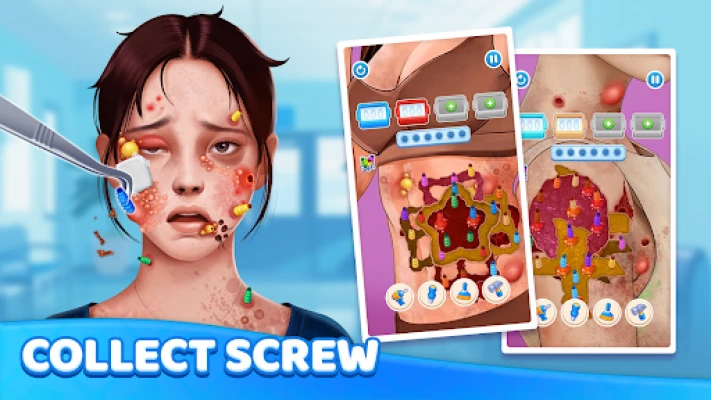 Each level features beauty model, troubled by larvas, maggot oddly placed screws, pins, and bolts. Your task? Carefully unscrew and clear these mechanical intrusions from various facial and body zones. From face, leg to limbs and more to reveal smooth, beautiful surfaces beneath. It’s puzzle-solving with a makeover twist, where every satisfying pull brings out hidden beauty.