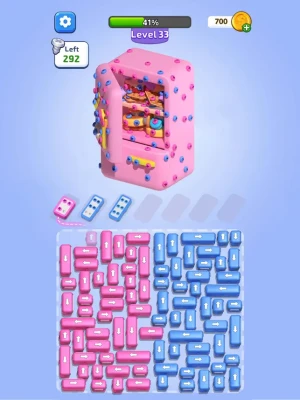 Observe the colored boxes in front of you carefully and unleash your creativity. These boxes will follow your commands, moving along the arrows' directions on top until they reach their target zones. Here’s the key: Once a box reaches the designated area, it automatically attracts screws of the same color on the model’s surface. When all the screws on the model fall, the entire model is dismantled!