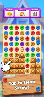 💡 How to Play: ✔️ Swap any two screws to create a match-3. ✔️ Break blockers to open new spaces. ✔️ Complete level goals within the move limit. ✔️ Experience unique level designs and strategic gameplay!
