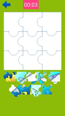 - 10 Funny Sea ANimal jigsaw Puzzle. - 2 Mode Play (Training and Chalenge By Time) - 9 and 16 pieces Puzzle - Play with your children and get fun