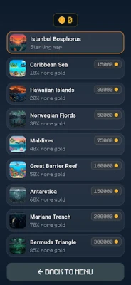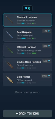 From anchovies to whales, 18 different fish species and 6 special items including gift boxes, diamonds, and energy await you. Hunt across 10 unique maps from the Istanbul Bosphorus to the Mariana Trench. Choose from 5 different harpoons, save your gold, and unlock the mightiest weapon.