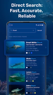 >> Open the list of marine life that match the specified criteria and find the one you were looking for.