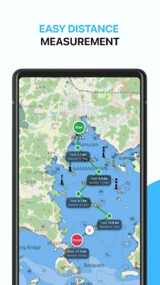 Quickly measure the distance between multiple points on the map in either meters (m) or Nautical Miles (NM).