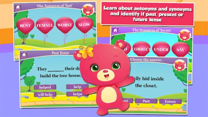 In Bear's educational games for kids, we developed a laid-back, fun-filled trip down the study lane to help you draw your children into learning the core concepts of Grade 2 Math and English.