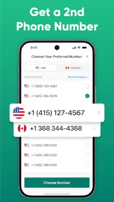 • Instant Second Phone Number: Create your own 2nd line within seconds. Choose from multiple area codes across the USA, Canada, UK, and more.